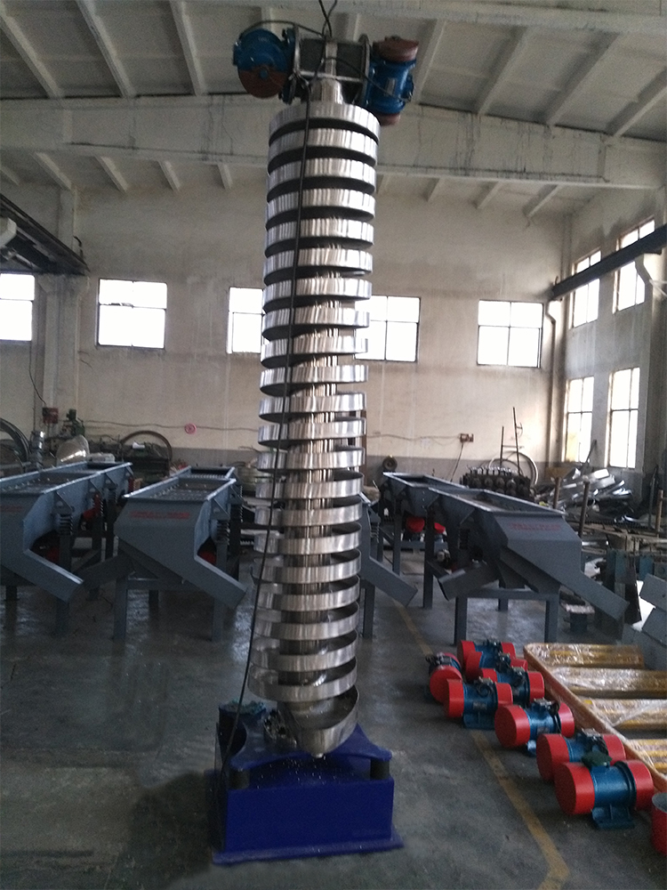 垂直振動(dòng)提升機(jī)采用振動(dòng)電機(jī)作振動(dòng)源,利用兩臺(tái)振動(dòng)電機(jī)的合成振幅,將物料沿螺旋輸送槽向上輸送。主要用于提升顆粒狀、粉狀、塊狀物料。除具有從下向上提升物料外,還可以完成對(duì)物料的干燥和冷卻。分為敞開式、封閉式兩種結(jié)構(gòu)。并可按照用戶需要進(jìn)行特殊設(shè)計(jì)。